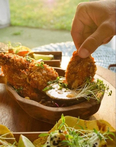 Crispy chicken, coleslaw, tandoori sauce, salad, pickles